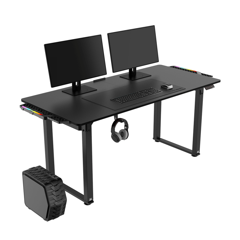 Ultradesk UPLIFT si basa su una solida struttura in acciaio di alta qualità, che gli conferisce resistenza e rigidità. La solida struttura in acciaio rende la scrivania stabile anche durante un uso intensivo. Il mobile presentato resisterà al peso di un computer, monitor, stampante e altri dispositivi, senza timore di deformazioni o piegature del piano. Il frame “Rage Safe” piacerà particolarmente ai giocatori d’azione, poiché resiste facilmente a vigorose esplosioni di gioia o frustrazione durante il gioco.