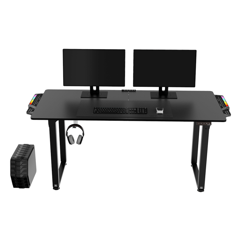 ULTRADESK UPLIFT è il prodotto perfetto per chi ha bisogno di un partner di gioco affidabile. La larghezza di 160 cm e la profondità di 75 cm fanno sì che soddisfi le aspettative anche dei giocatori più esigenti. A causa delle grandi dimensioni del desktop, i clienti scelgono spesso UPLIFT per set composti contemporaneamente da un computer e una console di gioco. La forma regolare e rettangolare del piano del tavolo consente un posizionamento preciso dell’intero mobile rispetto alle pareti della stanza di destinazione.