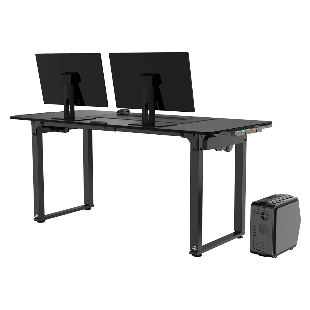 Il nuovo design della scrivania consente ai giocatori di allargare liberamente le gambe sotto l’area di lavoro. Non c’è paura di confronti dolorosi tra i piedi e il metallo duro, il che contribuisce ad aumentare il comfort durante le lunghe sessioni di gioco. La mancanza di una traversa inferiore consente anche un comodo utilizzo di un case per computer alto. Puoi posizionare liberamente l’unità centrale senza i vincoli della tradizionale costruzione della scrivania. Il telaio senza la traversa inferiore sembra esteticamente gradevole e moderno.